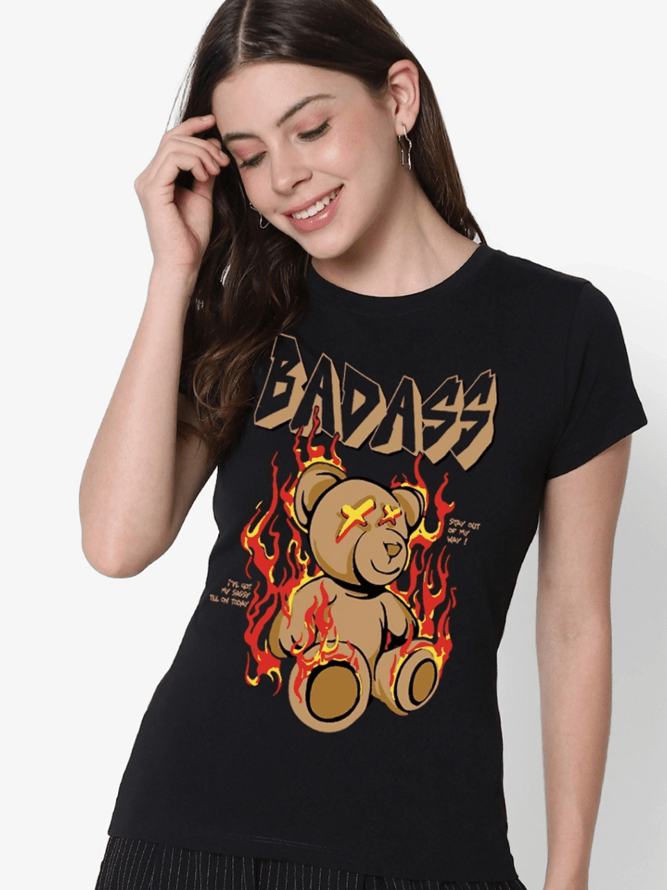 Elevate your style with the Women’s Black Badass Graphic Printed T-Shirt, crafted from premium cotton for unmatched comfort. Proudly made in India for trendsetters.