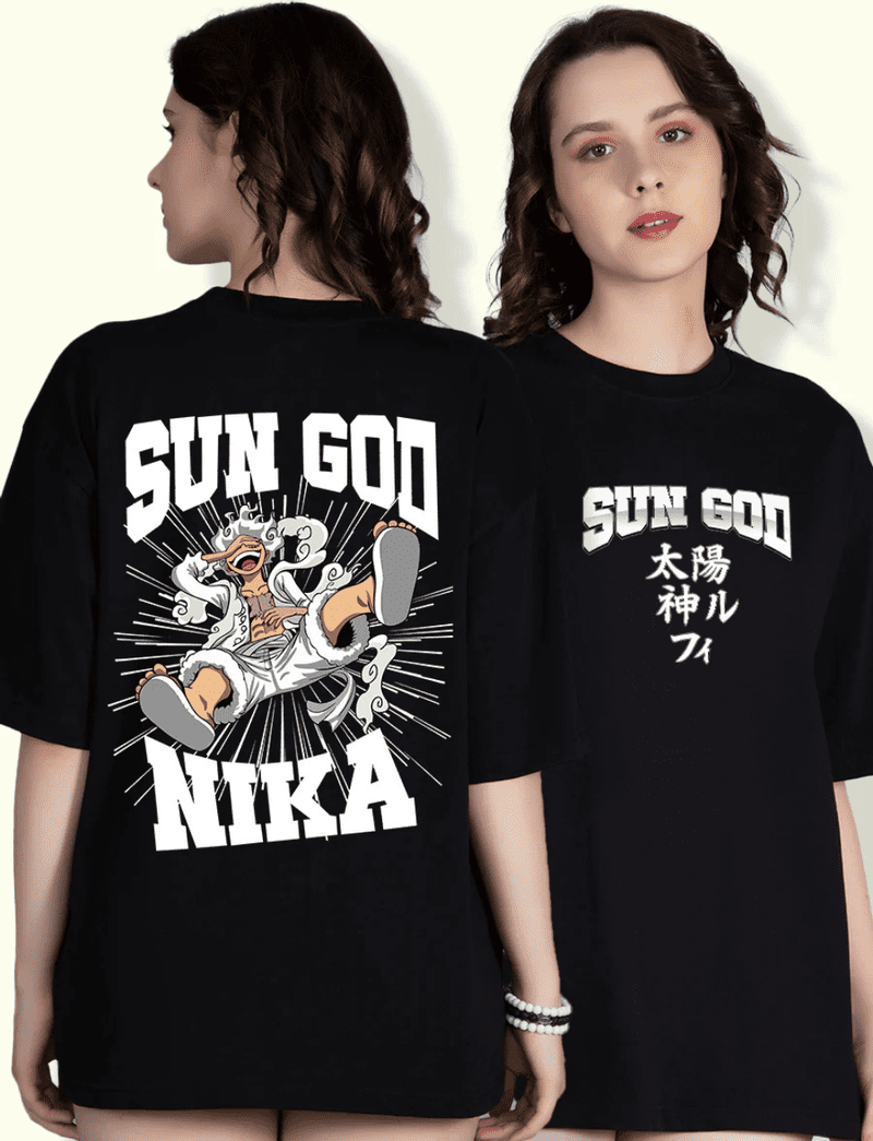 Shop the Sun God Printed Black Oversized T-Shirt for Women from SnazzyTrend, proudly made in India. Crafted with 100% premium cotton for unmatched style and comfort.