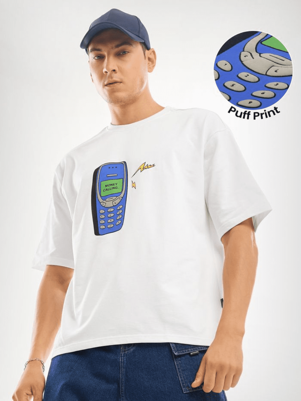 White Puff Printed Oversized T-shirt For Men
